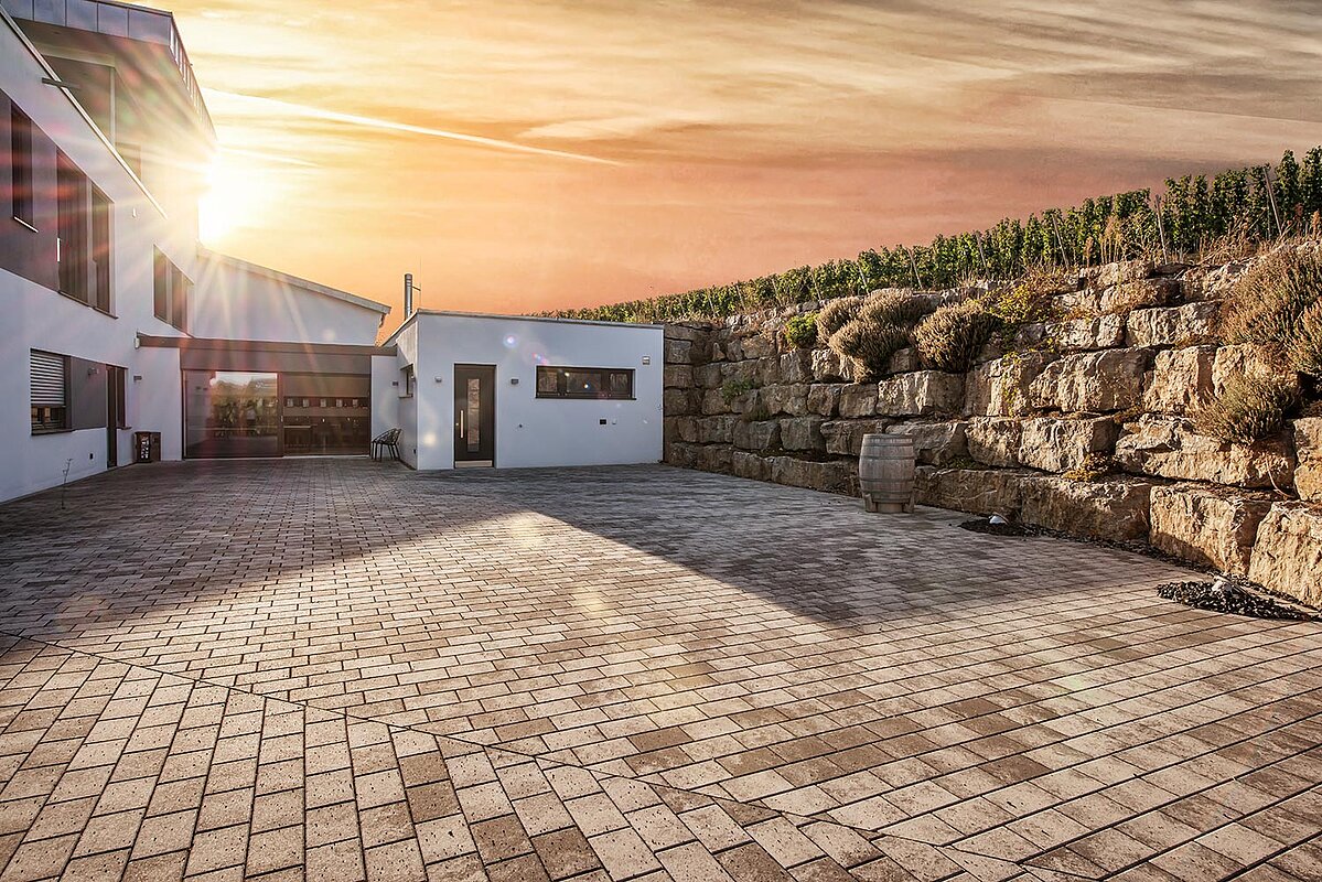 Modern, exklusiv, mitten im Weinberg - unser Weingut verbindet edles Design mit der natürlichen Schönheit der umgebenden Weinberge. Großzügige, lichtdurchflutete Räume, eine elegante Vinothek, die weitläufige Dachterrasse mit Blick über hunderte Rebstöcke und der charmante Winzerhof schaffen ein Ambiente, das zugleich stilvoll, warm und einladend ist.