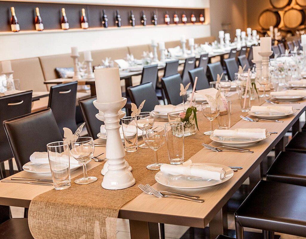Ob Geburtstag, Hochzeit oder ein anderer besonderer Anlass – in unserem Weingut finden Sie den perfekten Ort für unvergessliche Momente. Unsere Räumlichkeiten stehen Ihnen den gesamten Tag exklusiv zur Verfügung, sodass Sie Ihre Feier ganz nach Ihren Vorstellungen gestalten und bis spät in die Nacht genießen können. Für Hochzeiten bieten wir Ihnen sogar die Möglichkeit, das gesamte Weingut mit all seinen Räumen exklusiv zu mieten. So entsteht ein ganz persönlicher Rückzugsort, an dem Sie gemeinsam mit Ihren Gästen feiern, lachen und Erinnerungen schaffen können, die ein Leben lang bleiben.